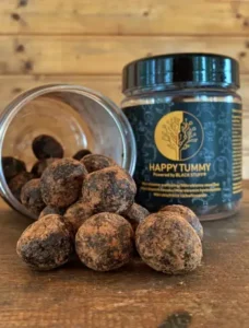 Happy Tummy on loodud selleks, et toetada kõige tundlikumaid kõhtusid. Black Stuffi eriline lignofenoole sisaldav koostis aitab stabiliseerida seedimist, vähendada puhitus- ja raskustunde sümptomeid ning toetada soolestiku loomulikku tasakaalu. Eriti sobib see lastele, kelle seedimine võib olla veel õrn ja ebastabiilne – Happy Tummy aitab toetada nende igapäevast energiat, mugavustunnet ja üldist heaolu. Lapsed saavad Black Stuffi nautida magusa trühvli kujul, mis teeb igapäevase manustamise lihtsaks ja maitsvaks.